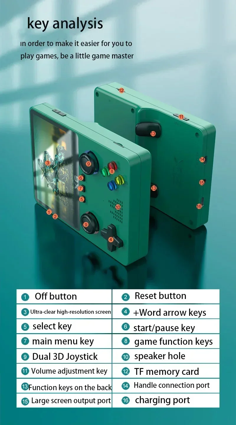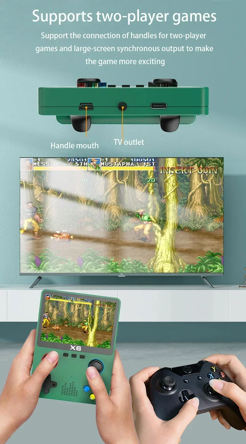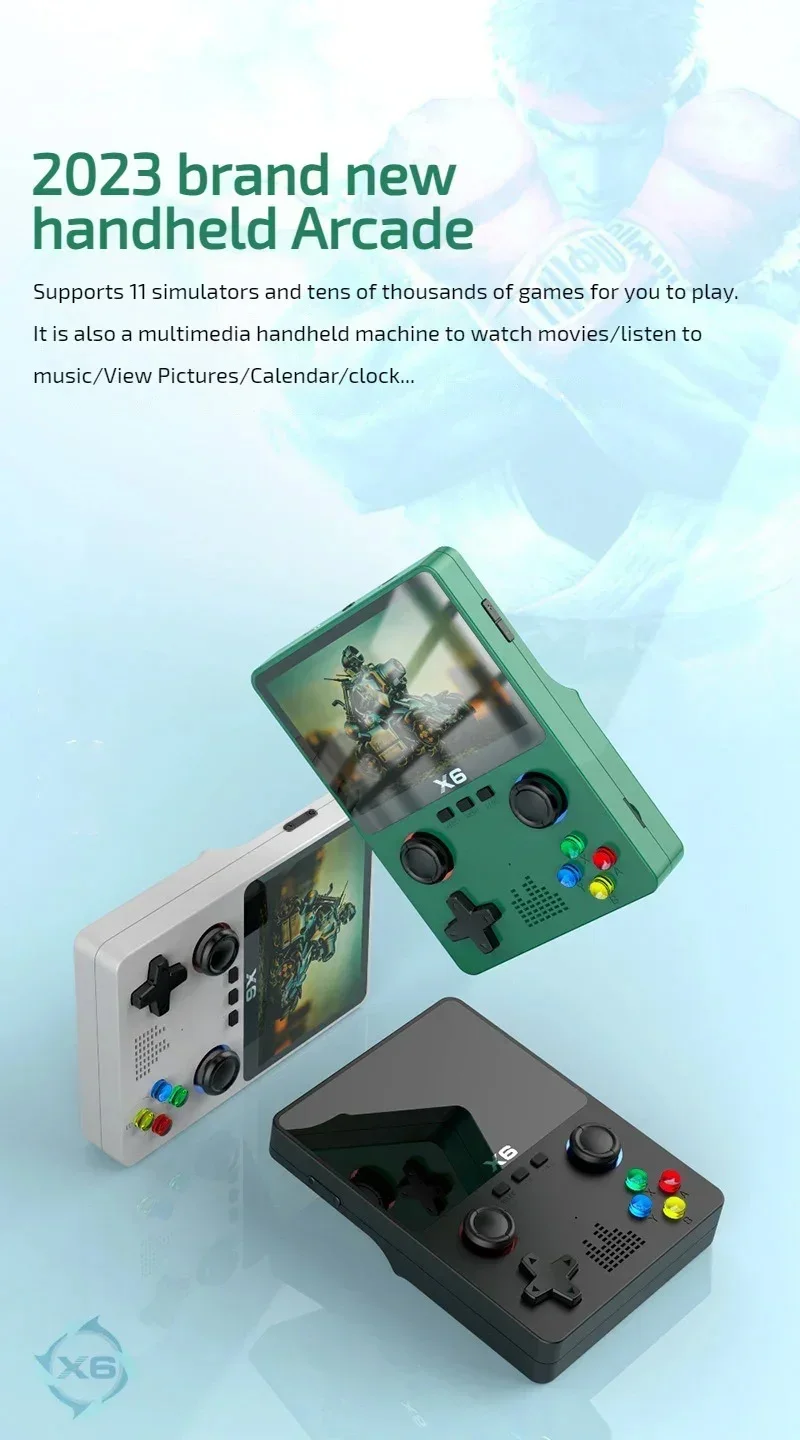 3.5Inch IPS Screen X6 Game Console Handheld Game Player Dual Joystick GBA Video Game Console 11 Simulators Kids Gifts
