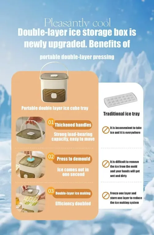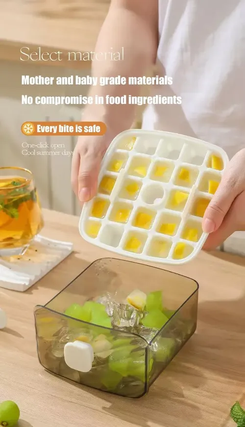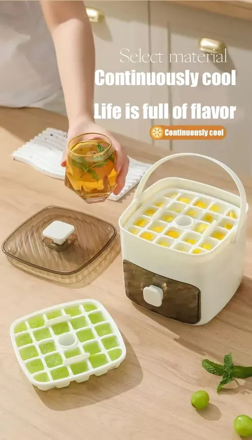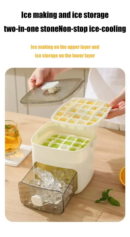 48-Cube Ice Maker with Easy-Press Lid - Double-Layer, Food-Grade Plastic Tray, Freezer-Safe - Perfect for Drinks, Essential Kitchen Accessory