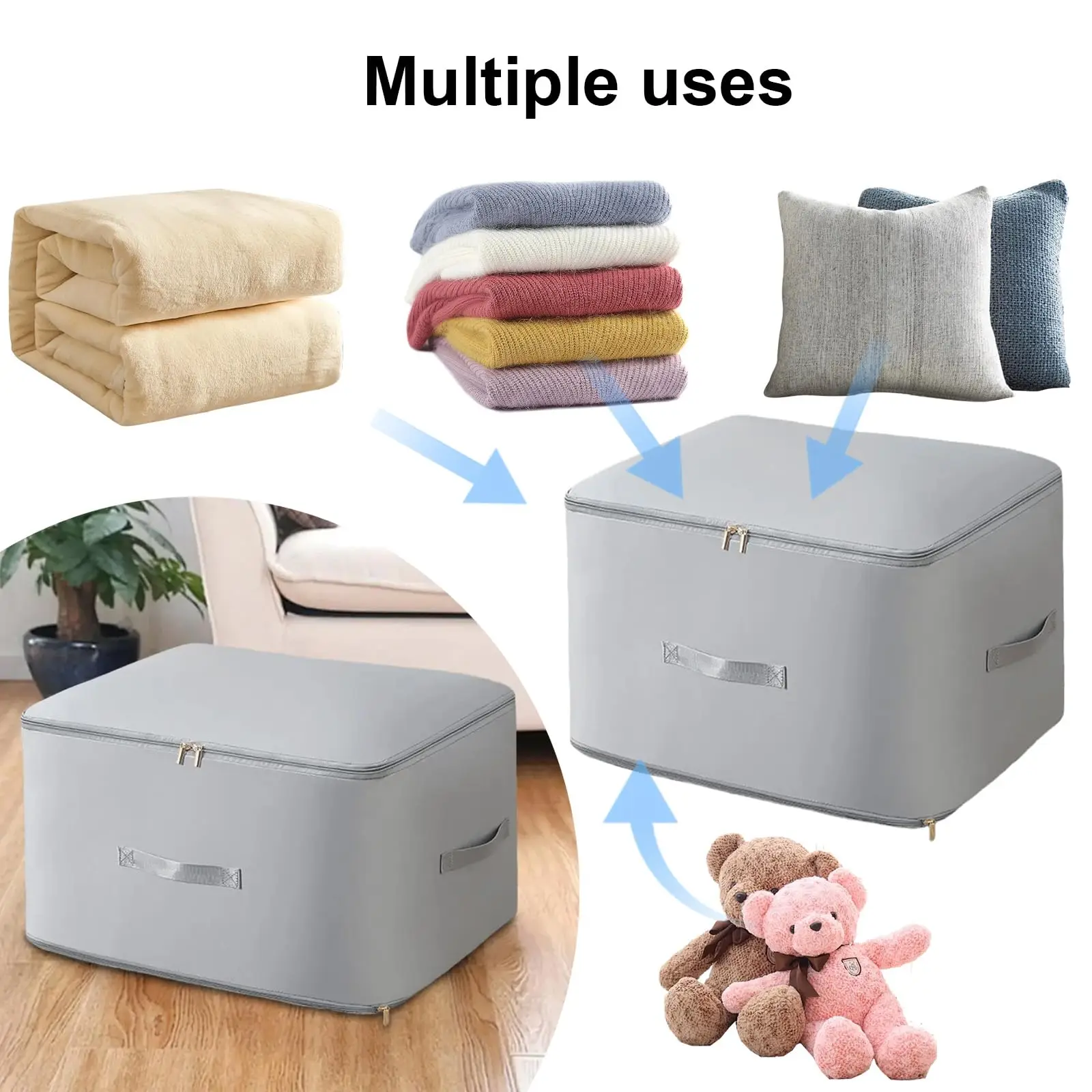 Wide range of uses: This duvet storage bag can be used to organize clothes in the closet during season changes, store bedding, organize moving items, etc. Foldable, reusable, hand washable or machine washable.