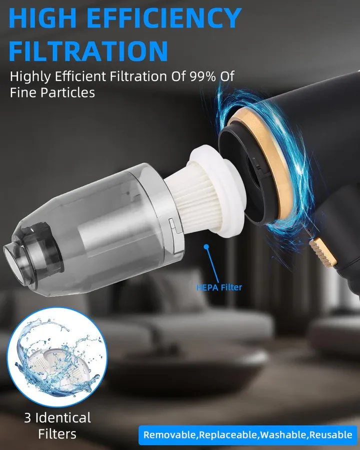 Say goodbye to cumbersome cleaning tools! This 3-in-1 multi-functional handheld vacuum cleaner combines powerful suction, flexible operation, and long battery life, making it easy to adapt to different scenarios—whether cleaning your car, dusting your desk, or cleaning your keyboard—all in one machine. The washable HEPA filter is both environmentally friendly and economical, making cleaning simpler and more efficient!