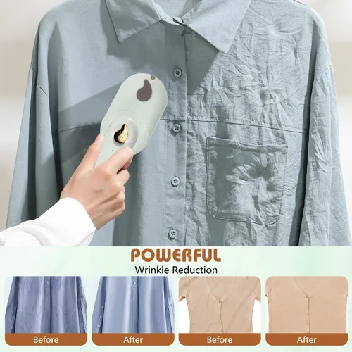 About This ProductSafety First: This portable steam iron features anti-scalding technology for safe wrinkle removal. A built-in intelligent system regulates steam volume and temperature to prevent overheating and dry-out, allowing worry-free garment care. It's especially suitable for delicate fabrics.Easy to Use: Switching between flat ironing and ironing modes simplifies garment care. The ergonomic handle allows for comfortable one-handed operation, while instant steam and convenient controls deliver fast, professional results.Portable: This mini steam iron boasts a compact design and portability, making it ideal for travelers and students. Its compact size makes it easy to store in a suitcase or in a corner of a dorm room while maintaining all its features.More Features: Instantly removes stubborn wrinkles, neutralizes odors, and leaves fabrics clean and shiny. Its versatile design is suitable for clothing, curtains, and upholstery. Compact and efficient, it delivers professional-quality cleaning results anytime, anywhere.Wide Application: Easily combat wrinkles at home or on the go. The foldable and swivel design ensures easy storage even in small spaces or suitcases, making it a versatile companion for business trips, vacations, or everyday wear.